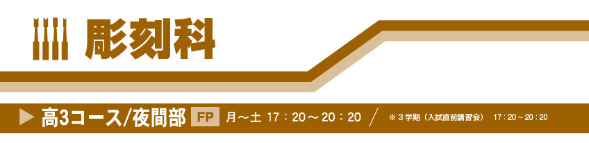 本当に必要なことは1番初めに出会っているものです・・・。彫刻科の実技は基礎の延長線上に集約されていると言ってもいいでしょう。マンツーマン指導の特徴をフルに活かし個々のレベルからカリキュラムを構成。『基礎からハイレベルまで』、そのニーズに応える指導内容です。