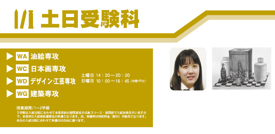近年、推薦入試における各大学の選抜方法も多様化し、作品等の提出を求める大学もあります。これらの入試状況に対応するためには、入試情報の正確な把握とそれに即した的確な指導が求められます。各自の志望校に合わせた綿密なプログラムを組み指導を進めます。