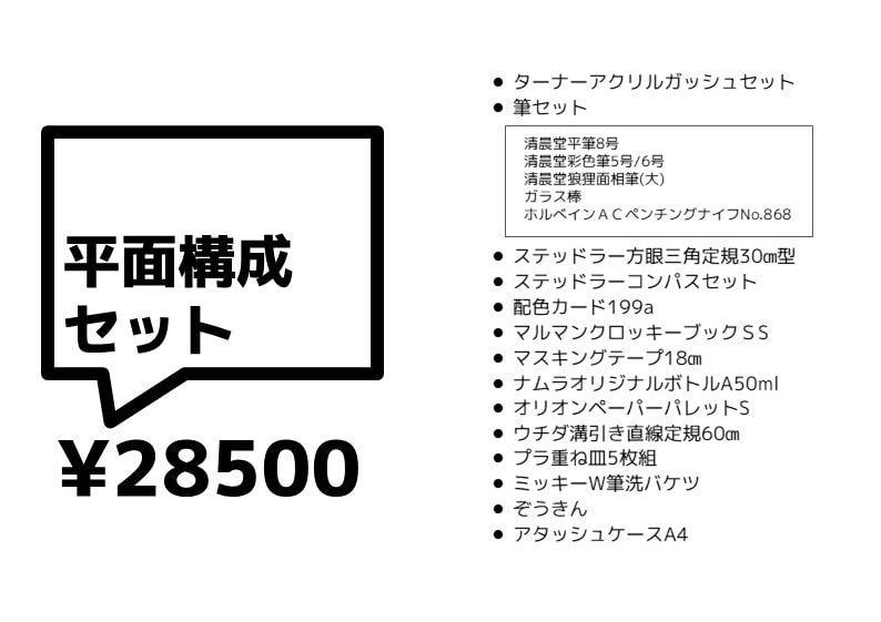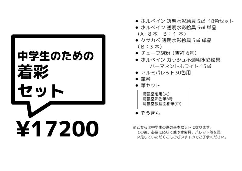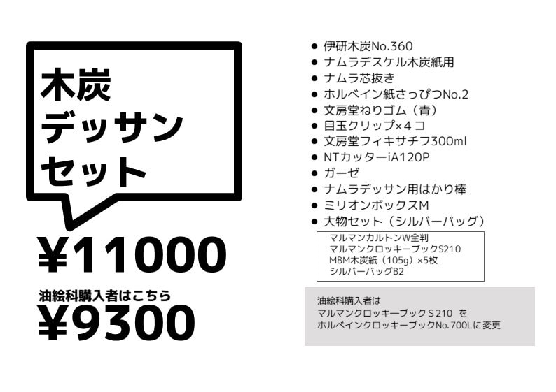 本学院画材部“合格堂”では市価よりも安い値段にて画材を販売しています。初めて実技を勉強する場合には各実技科・コースに合わせて用具一式セットなども扱っていますので、希望の方は画材部“合格堂”にて購入して下さい。ご希望の方には通信販売を行っています。
